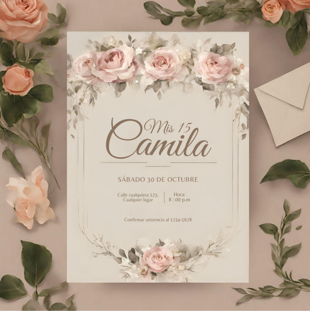 Plantilla de invitación de quince delicado y juvenil, invitación de quince imprimible, invitación de quince, invitación de flores, canva, plantilla